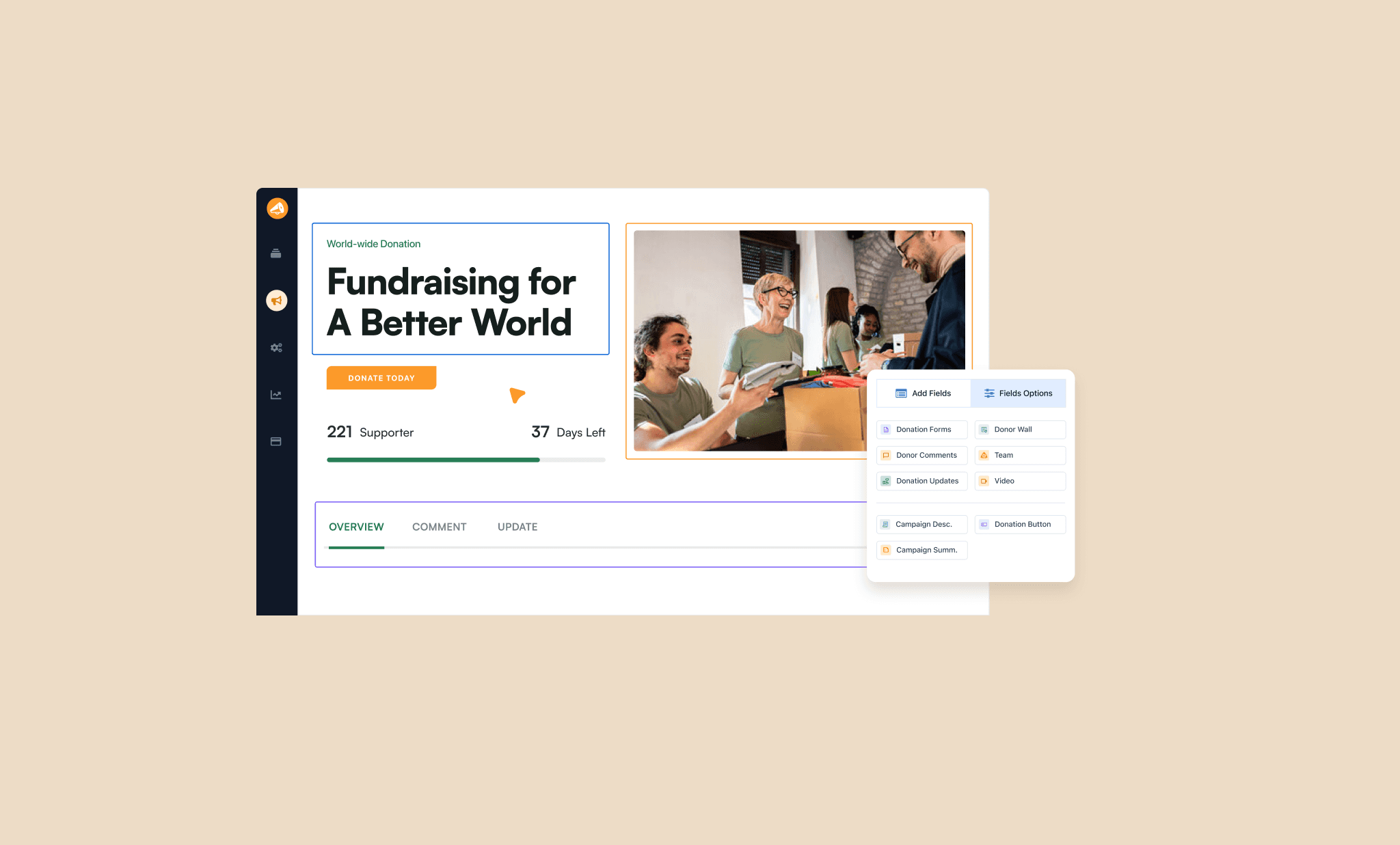 Help users build Charity Website without any Coding Knowledge